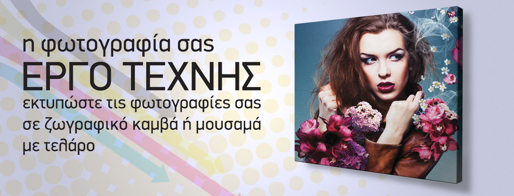 Ανανεώστε τον προσωπικό σας χώρο, το γραφείο σας ή το κατάστημά σας, εκτυπώνοντας τις φωτογραφίες σας σε διάφορα υλικά εκτύπωσης, όπως: ζωγραφικό καμβά ή μουσαμά με ξύλινο τελάρο, αυτοκόλλητο βινύλιο, χαρτί, ταπετσαρία τοίχου, ταπετσαρία για παιδικό δωμάτιο. ΜΕΤΑΤΡΕΨΤΕ ΤΙΣ ΠΡΟΣΩΠΙΚΕΣ ΣΑΣ ΦΩΤΟΓΡΑΦΙΕΣ ΣΕ "ΕΡΓΑ ΤΕΧΝΗΣ"!